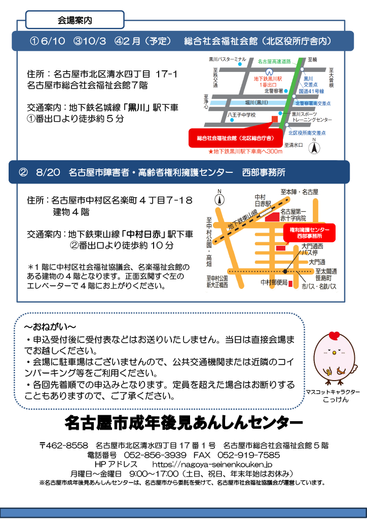 名古屋市北区清水四丁目17-1 名古屋市総合社会福祉会館7階